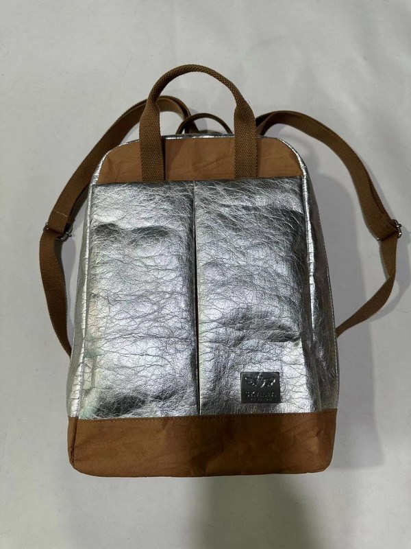 Биоразлагаемый золотисто-серебристый многоразовый моющийся рюкзак из крафт-бумаги